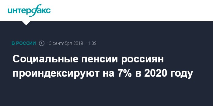 Социальные пенсии россиян проиндексируют на 7% в 2020 году
