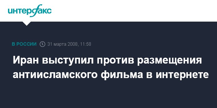 Тегеран/Амстердам. 31 марта. INTERFAX.RU - Иранский МИД вызвал посла Голландии, а также высокопоставленного дипломата Словении, которая сейчас председательствует в ЕС, и выразил им протест в связи с размещением в Интернете "оскорбительного и антиисламского фильма" голландского парламентария Герта Вильдерса, оскорбляющего Коран, сообщают в понедельник иранские СМИ.