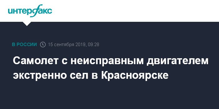 Москва. 15 сентября. INTERFAX.RU - Пассажирский лайнер экстренно сел в Красноярске с отказавшим двигателем.