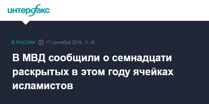 Москва. 17 сентября. INTERFAX.RU - МВД России совместно с ФСБ выявлено порядка 17 законспирированных ячеек ИГ (запрещена в РФ) на территории субъектов России в 2019 году, сообщил начальник главного управления по противодействию экстремизму МВД России генерал-майор полиции Олег Ильиных.