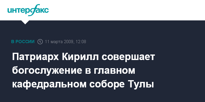 Москва. 11 марта. INTERFAX.RU - Патриарх Московский и всея Руси Кирилл в среду возглавил Божественную литургию в Всехсвятском соборе Тулы, главном кафедральном храме города.