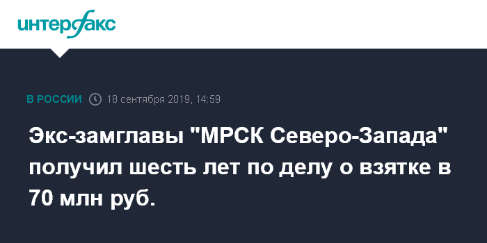 Экс-замглавы "МРСК Северо-Запада" получил шесть лет по делу о взятке в 70 млн руб.