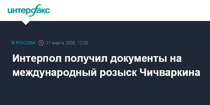 "Интерпол подтверждает, что получил документы из Генпрокуратуры РФ на объявление Чичваркина в международный розыск ", - сообщил "Интерфаксу" в среду официальный представитель НЦБ Интерпола в РФ. "Евгений Чичваркин будет объявлен в международный розыск по каналам Интерпола в самое ближайшее время, может быть, даже завтра", - сказал собеседник агентства.