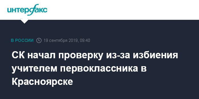 Москва. 19 сентября. INTERFAX.RU - Следователи начали проверку после сообщений СМИ об учителе школы в Красноярске, ударившем первоклассника во время урока, сообщает в четверг пресс-служба Главного следственного управления СКР по краю.