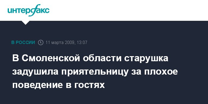 В Смоленской области старушка задушила приятельницу за плохое поведение в гостях