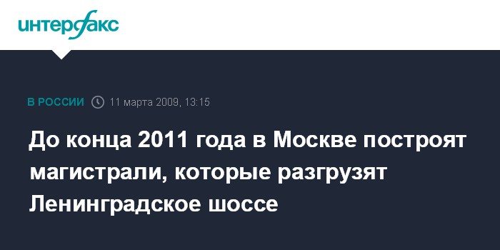 До конца 2011 года в Москве построят магистрали, которые разгрузят Ленинградское шоссе