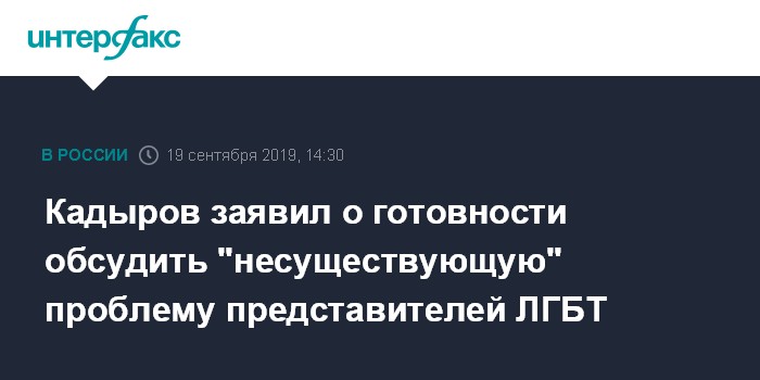 Москва. 19 сентября. INTERFAX.RU - Глава Чечни Рамзан Кадыров готов к диалогу с докладчиком Парламентской ассамблеи Совета Европы (ПАСЕ) по вопросам защиты прав представителей сексуальных меньшинств в Чечне Франком Швабе. Вместе с тем Кадыров считает проблему с нарушением прав представителей ЛГБТ-сообщества в республике надуманной.