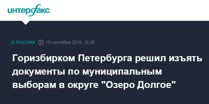 Горизбирком Петербурга решил изъять документы по муниципальным выборам в округе "Озеро Долгое"