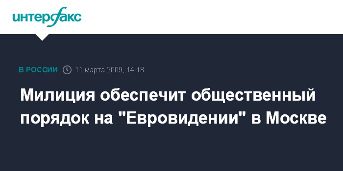 Москва. 11 марта. INTERFAX.RU - Общественная безопасность и порядок при проведении в мае 2009 года в Москве международного музыкального конкурса "Евровидение" будут обеспечены, заявил первый замминистра внутренних дел РФ Михаил Суходольский.