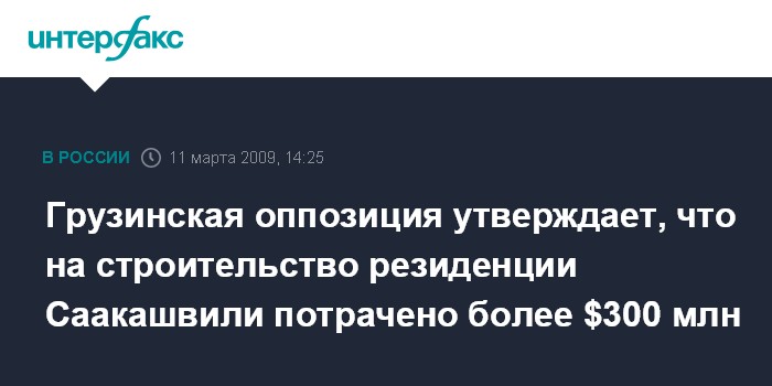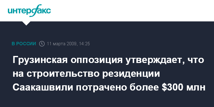 Москва. 11 марта. INTERFAX.RU - Представители грузинской оппозиции требуют от властей детального отчета по расходам на строительство резиденции президента Грузии Михаила Саакашвили в Тбилиси.