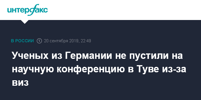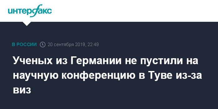Москва. 20 сентября. INTERFAX.RU - Ученых из Германии не допустили к участию в научной конференции в Тувинском государственном университете (ТувГУ), потому что у них были туристические визы, сообщили "Интерфаксу" в ТувГУ.