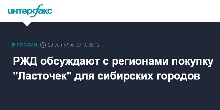 Москва. 23 сентября. INTERFAX.RU - Западно-Сибирская железная дорога (ЗСЖД, филиал ОАО "РЖД") после серии демонстрационных поездок электропоездов "Ласточка" между Новосибирском, Омском, Барнаулом и Томском обсуждает с региональными властями условия их приобретения, сообщила пресс-служба РЖД со ссылкой на начальника ЗСЖД Александра Грицая.