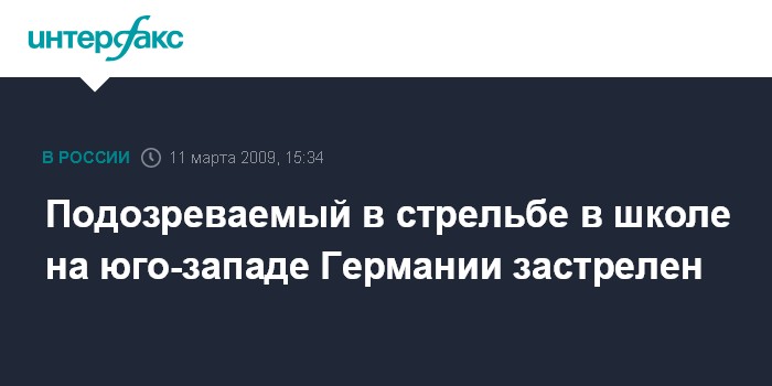 Берлин/Лондон. 11 марта. INTERFAX.RU - Преступник, открывший стрельбу в школе в немецком городе Виннендене, недалеко от Штутгарта жертвами которой, по последней информации, стали одиннадцать человек, вероятно, застрелен полицией, сообщает BBC со ссылкой на заявление представителей полиции города.