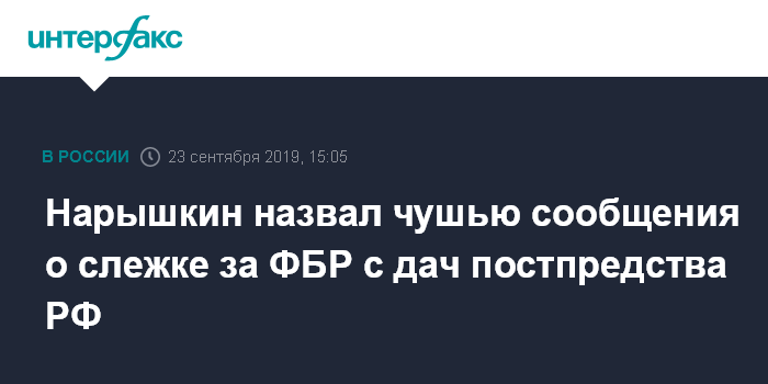 Москва. 23 сентября. INTERFAX.RU - Глава Службы внешней разведки России Сергей Нарышкин считает чушью утверждения американских СМИ о том, что российские дипломатические дачи использовались для слежки за ФБР.