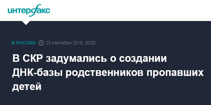 Москва. 23 сентября. INTERFAX.RU - Глава Следственного комитета РФ (СКР) Александр Бастрыкин провел оперативное совещание по вопросам розыска несовершеннолетних, поручив изучить возможность создания базы ДНК-учета родственников пропавших без вести детей.