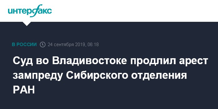 Суд во Владивостоке продлил арест зампреду Сибирского отделения РАН