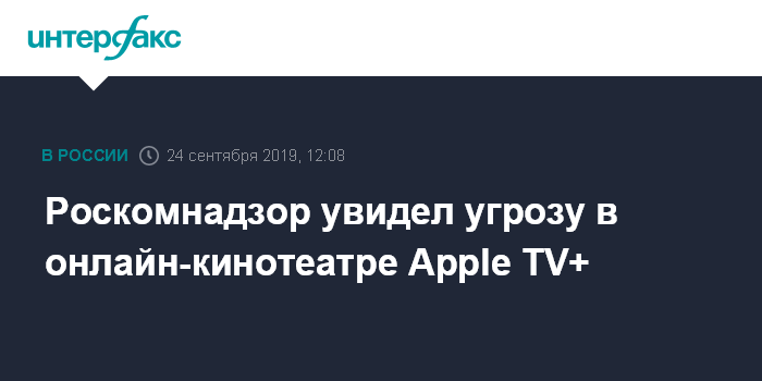 Москва. 24 сентября. INTERFAX.RU - Глава Роскомнадзора Александр Жаров увидел угрозу конкуренции, которую может составить онлайн-кинотеатр Apple TV+ аналогичным российским сервисам.