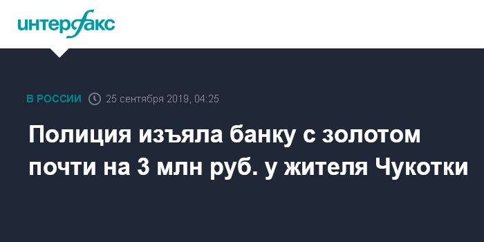Полиция изъяла банку с золотом почти на 3 млн руб. у жителя Чукотки