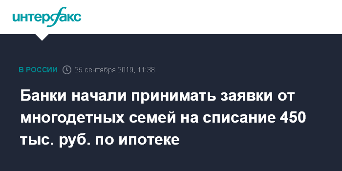 Банки начали принимать заявки от многодетных семей на списание 450 тыс. руб. по ипотеке