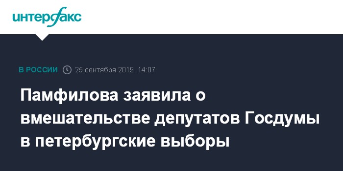 Памфилова заявила о вмешательстве депутатов Госдумы в петербургские выборы
