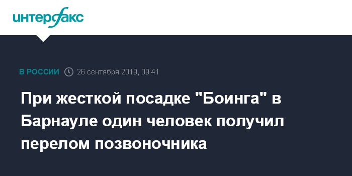 При жесткой посадке "Боинга" в Барнауле один человек получил перелом позвоночника