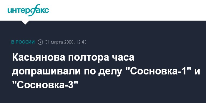 "Я был допрошен в качестве свидетеля по делу об имущественном комплексе "Сосновка-1", "Сосновка-3". Дело не закрыто", - сообщил журналистам М.Касьянов, выйдя через полтора часа от следователя.