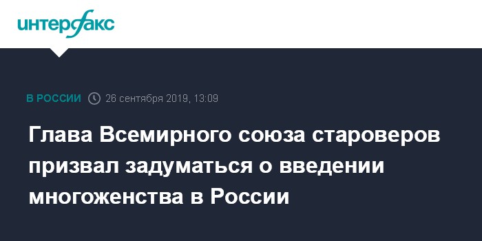 Глава Всемирного союза староверов призвал задуматься о введении многоженства в России