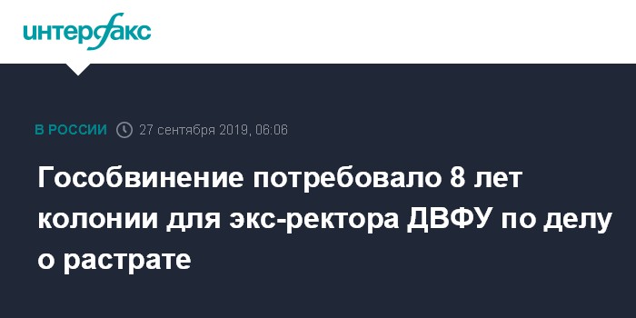 Гособвинение потребовало 8 лет колонии для экс-ректора ДВФУ по делу о растрате