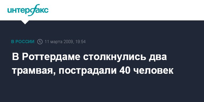 Амстердам. 11 марта. INTERFAX.RU - Около 40 человек пострадали в результате столкновения двух трамваев на западе голландского города Роттердама, 10 пострадавших находятся в тяжелом состоянии, сообщает нидерландская общественная радиостанция НОС.
