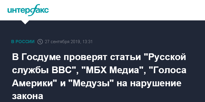В Госдуме проверят статьи "Русской службы BBC", "МБХ Медиа", "Голоса Америки" и "Медузы" на нарушение закона