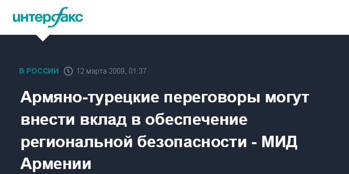 Ереван. 12 марта. ИНТЕРФАКС - Армяно-турецкие переговоры направлены не только на урегулирование отношений, но и могут внести важный вклад в обеспечение региональной безопасности и стабильности.