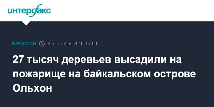 Москва. 30 сентября. INTERFAX.RU - Участники всероссийского добровольческого лесовосстановительного лагеря "Посади дерево - сохрани Байкалу жизнь" высадили около 27 тысяч саженцев сосны и лиственницы на самом крупном байкальском острове Ольхон, сообщила пресс-служба правительства Иркутской области в понедельник.