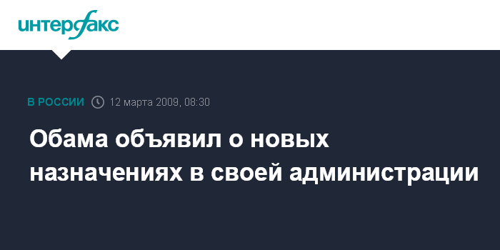 Москва. 12 марта. INTERFAX.RU - Президент США Барак Обама объявил о новых важных назначениях в своей администрации, сообщает пресс-служба Белого дома.