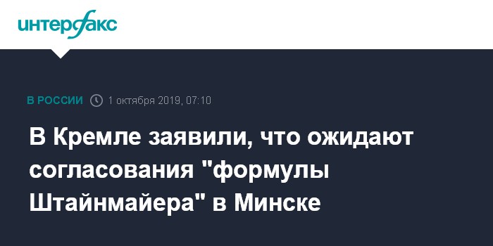 Москва. 1 октября. INTERFAX.RU - В Кремле рассчитывают, что заседание Контактной группы по Украине во вторник завершится согласованием "формулы Штайнмайера" и еще рядом важных договоренностей.