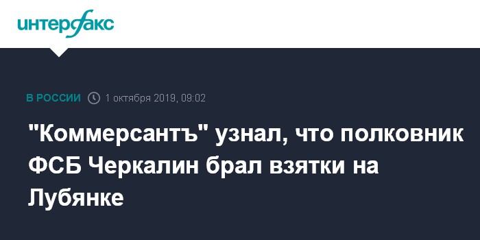 "Коммерсантъ" узнал, что полковник ФСБ Черкалин брал взятки на Лубянке