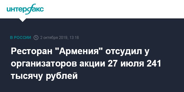 Ресторан "Армения" отсудил у организаторов акции 27 июля 241 тысячу рублей
