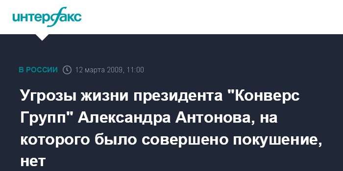 Угрозы жизни президента "Конверс Групп" Александра Антонова, на которого было совершено покушение, нет