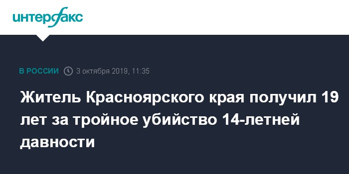 Житель Красноярского края получил 19 лет за тройное убийство 14-летней давности