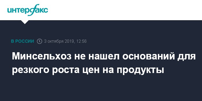 Москва. 3 октября. INTERFAX.RU - Минсельхоз РФ не видит оснований для резкого роста цен на основные виды сельхозпродукции, говорится в сообщении ведомства.