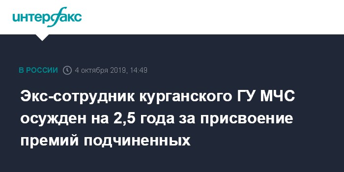 Экс-сотрудник курганского ГУ МЧС осужден на 2,5 года за присвоение премий подчиненных