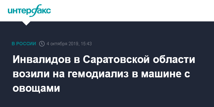 Москва. 4 октября. INTERFAX.RU - Жителей поселка Дергачи Саратовской области перевозят на процедуру гемодиализа в город Энгельс в машине для хозяйственных нужд районной больницы.