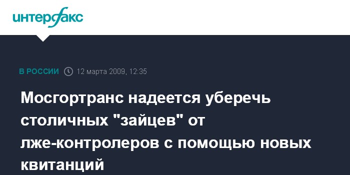 Москва. 12 марта. INTERFAX.RU - С 15 марта ГУП "Мосгортранс" вводит в обращение новые штрафные квитанции за безбилетный проезд, которые в четверг журналистам продемонстрировал начальник билетного контроля предприятия Виктор Богданов.