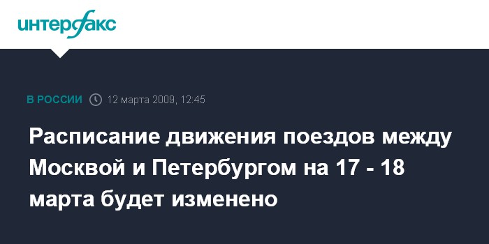 Расписание движения поездов между Москвой и Петербургом на 17 - 18 марта будет изменено
