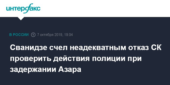 Азар в понедельник опубликовал ответ Следственного комитета России на его обращение, в котором говорится, что ведомство не нашло оснований для проверки действий полицейских, которые в августе задержали его и увезли в отдел, оставив его двухлетнюю дочь одну в незапертой квартире. Согласно документу, следствие не нашло "достаточных объективных сведений" об обстоятельствах происшествия.