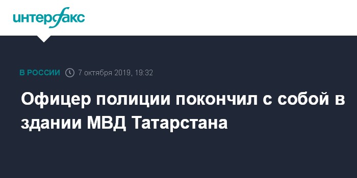 Полицейский скончался в автомобиле скорой помощи, уточнил сотрудник пресс-службы. В настоящее время в ведомстве создана комиссия под руководством заместителя министра внутренних дел по Татарстану, которая будет выяснять обстоятельства и причины суицида сотрудника внутренних органов, а также проведет служебную проверку, рассказал собеседник агентства.