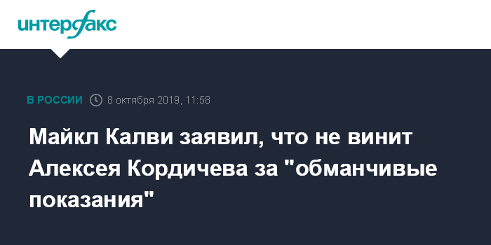 Майкл Калви заявил, что не винит Алексея Кордичева за "обманчивые показания"