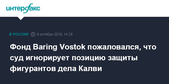 Фонд Baring Vostok пожаловался, что суд игнорирует позицию защиты фигурантов дела Калви