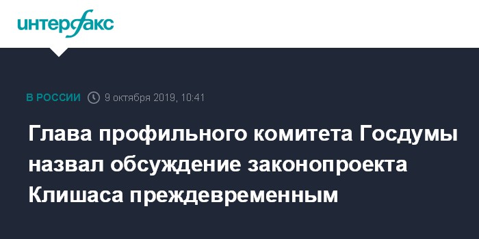 Глава профильного комитета Госдумы назвал обсуждение законопроекта Клишаса преждевременным