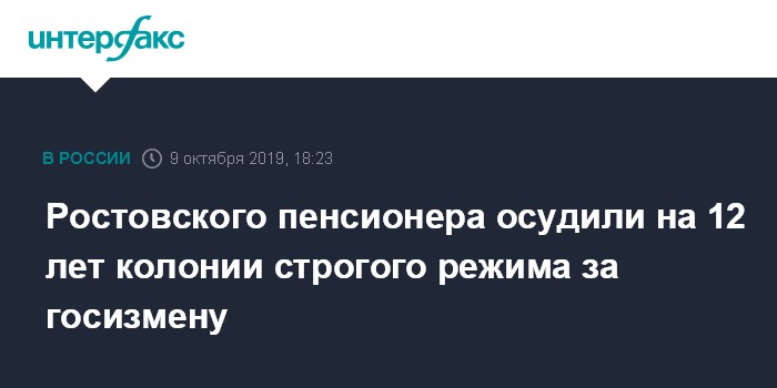 Ростовского пенсионера осудили на 12 лет колонии строгого режима за госизмену