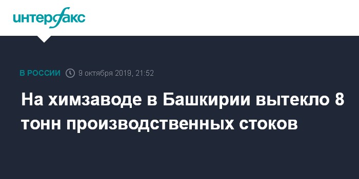Москва. 9 октября. INTERFAX.RU - В башкирском Благовещенске из-за повреждения резервуара с отходами предприятия АО "Полиэф" промышленные стоки попали "на прилегающую территорию", сообщила в среду пресс-служба республиканского главка МЧС.